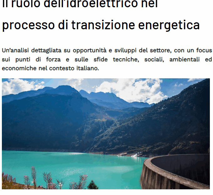 Il ruolo dell’idroelettrico nel processo di transizione energetica
