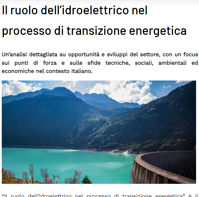 Il ruolo dell’idroelettrico nel processo di transizione energetica